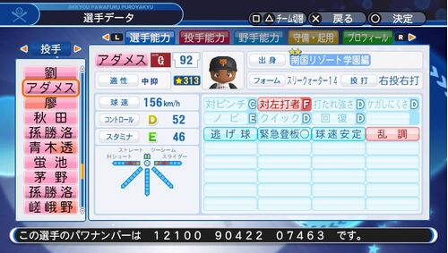 今季二軍で好成績を残し一軍昇格したアダメス投手です 二軍では20イニングで与四死球5とコントロールに改善が見られました 査定のあれこれ コントロールの上昇、変化球をツーシーム系主体に。 画像ファイルはこちら