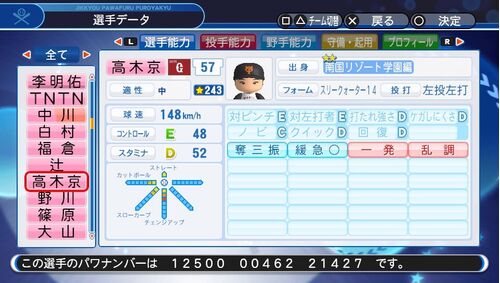 星稜高校→國學院大学 伸びのあるストレートと鋭く変化するカーブが特徴の左腕。昨季は3年ぶりに一軍のマウンドに復帰するも、登板はシーズン序盤の3試合のみにとどまった。今季は力強いボールを取り戻し、首脳陣からの信頼を勝ち取る(スポナビ高木京介より…