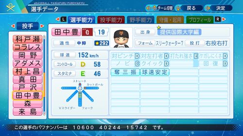 本日7月26日に支配下登録された田中豊樹選手です 日ハムから戦力外通告を受け巨人と育成契約を去年結ぶと、今季は二軍リリーフで奪三振を量産し、支配下登録されました では能力 査定のあれこれ 威力ある直球と縦のスライダーとフォークを主体に コントロー…
